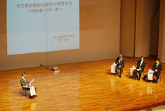 | パネルディスカッション「静岡県の地域医療の課題」 静岡県内で最も課題を抱える中東遠医療圏から公立病院長3人がパネリスト ファシリテーター 神原啓文(静岡県病院協会長) |